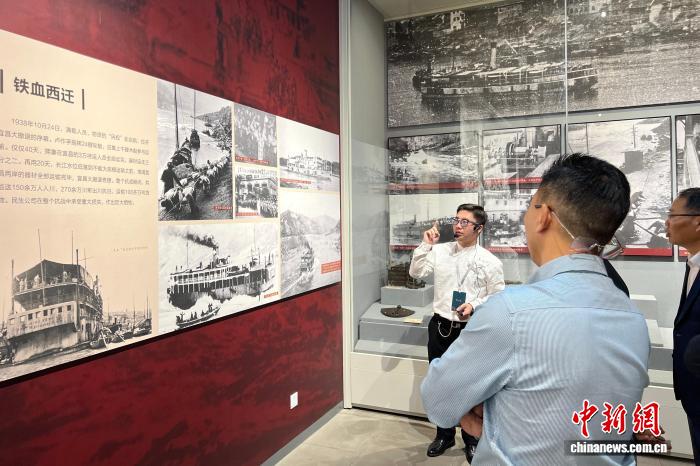 图为不雅寡经由过程图文原料领会卢做孚构造的“宜广大撤离”汗青。记者 肖江川 摄